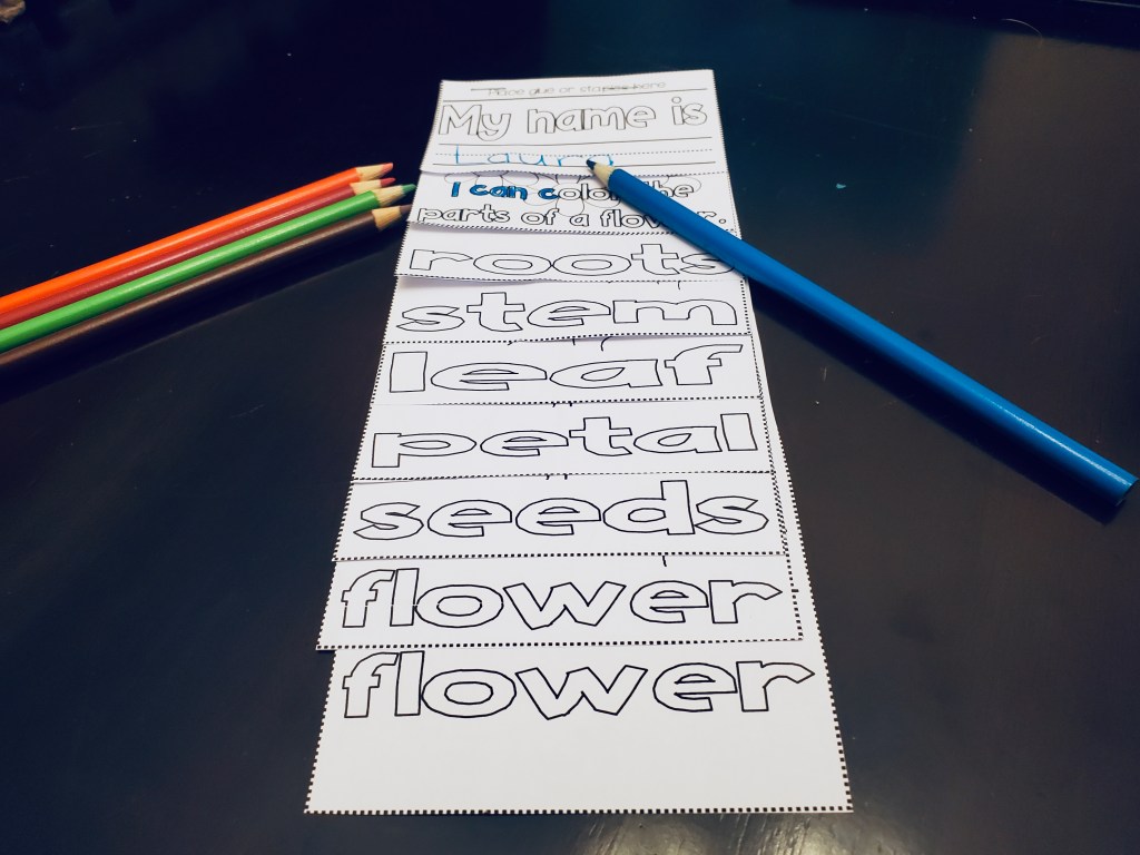 This flip book has 9 cut out pages, and each page has a picture and a short sentence about the function of the part of the flower. Students can cut apart the pages (Yay for fine motor skills and scissor practice!), or teachers can do it for them (but let’s be honest… for a large class, that can be time consuming). As a teacher, I’ve done it both ways and the students were equally pleased with their final production.