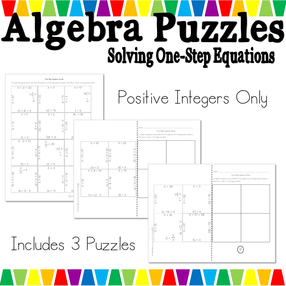 Click to download your free copy of this algebra one puzzle set! The set includes three different puzzles (one 3×4 puzzle, and two 2×2 puzzles). Don’t worry! Answer keys are included!